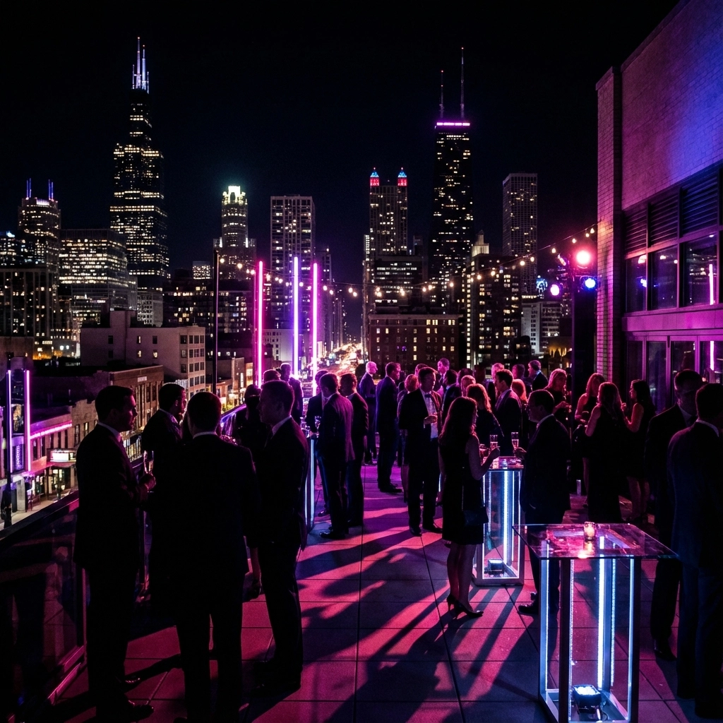 1. Private Rooftop Soirée with Chicago Skyline Views Transform a downtown Chicago rooftop into an intimate welcome gathering, complete with personalized cocktails inspired by your love story, locally-sourced canapés, and a curated playlist that chronicles your relationship. The city's glittering skyline provides a sophisticated backdrop as guests reconnect and anticipate the celebration ahead.